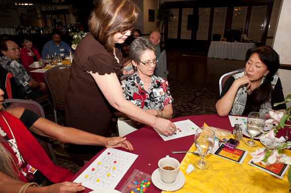 Cynthia checking Linda’s winner.